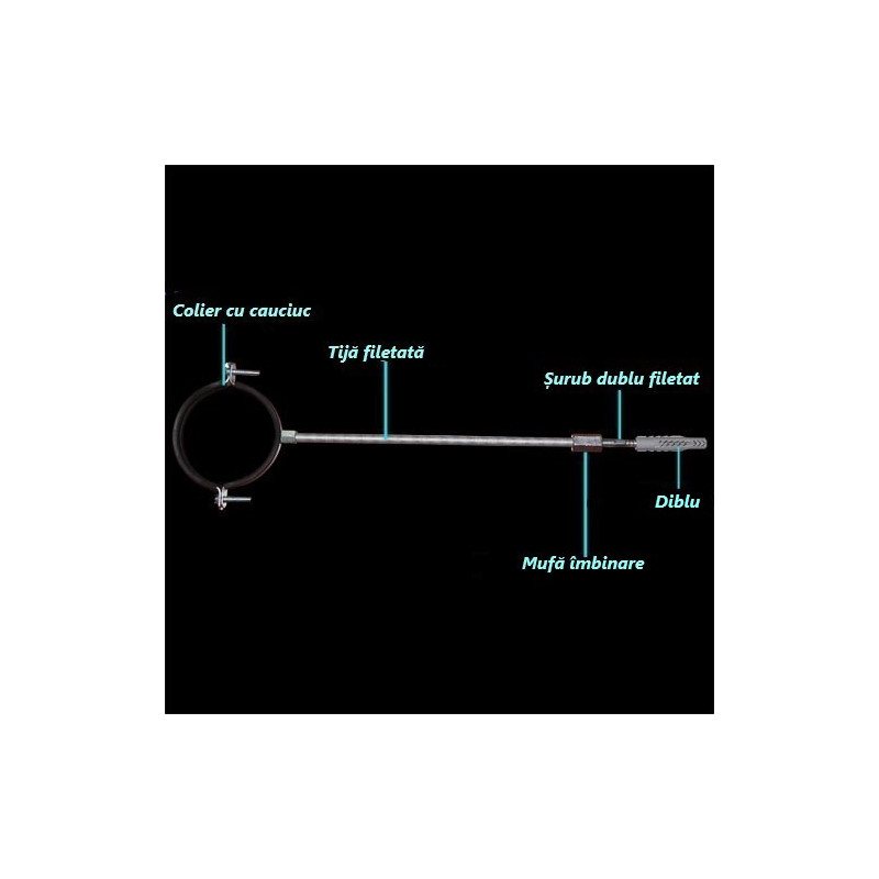 In stocTija filetată este folosită pentru, prelungire și fixare colier pentru conducte SPIRO, vezi imaginea. Această tijă filetată poate fi scurtată la lungime...