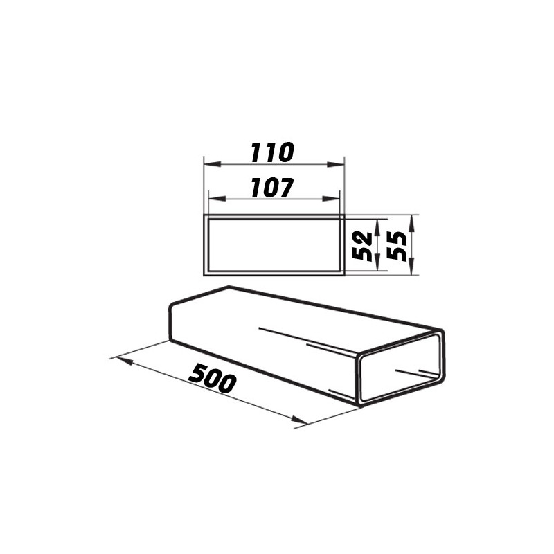 Conductă de ventilație din PVC cu dimensiuni de 110x55 mm și lungime de 0,5 m. Se utilizează în principal în locuri unde nu este destul spațiu, iar utilizarea conductelor circulare clasice nu este adecvată.