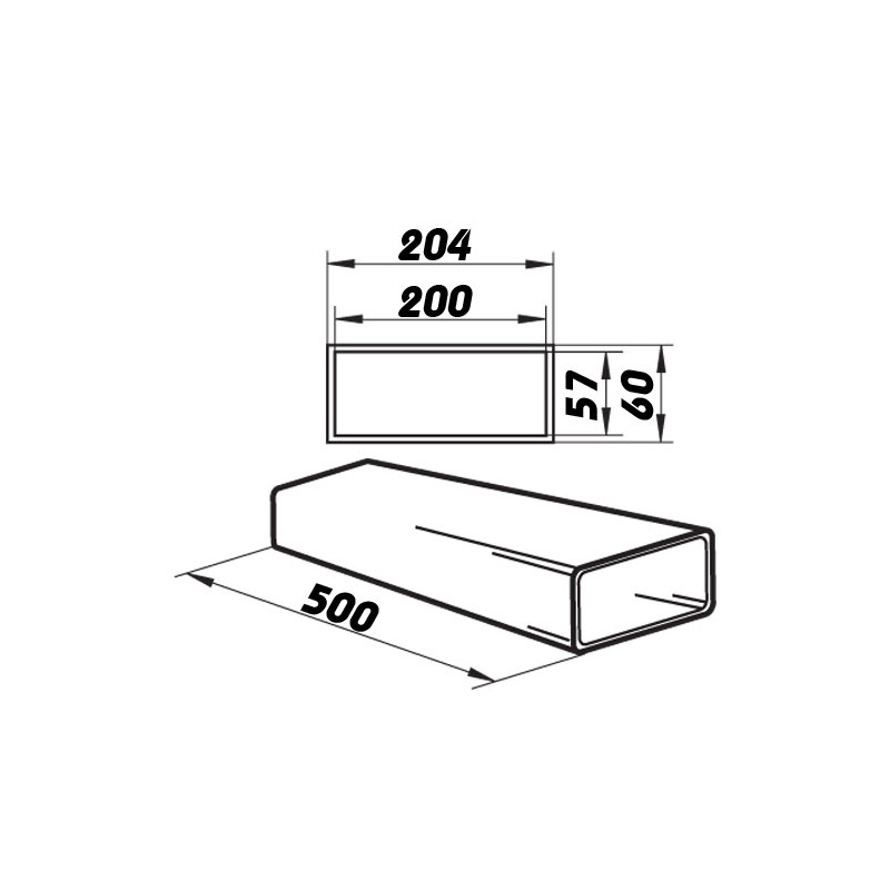 Conductă rectangulară PVC cu dimensiune 204x60 mm și lungime de 0,5 m. Se utilizează în principal în locuri unde nu este destul spațiu, iar utilizarea conductelor circulare clasice nu este adecvată. Acesta poate fi utilizat, de exemplu, la conectare cu sistemul de evacuarea aerului (hota de bucătărie...).