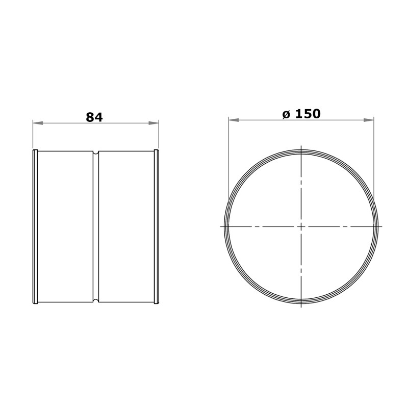 Conectorul exterior metalic Ø 150 mm este utilizat pentru conectarea componentelor (coturi, ramificați etc.). Conectorul are durată lungă de viață. Montarea este simplu, fără utilizarea unor unelte complicate (capetele sunt pur și simplu introduse una în alta). Conectorul este proiectat pentru temperatură de până la 100 °C și, este fabricat din tablă galvanizată. Pentru o mai bună etanșare a îmbinărilor, puteți să cumpărați bandă adezivă.