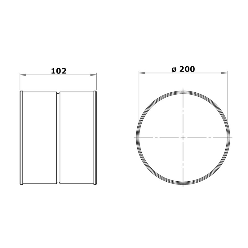Conectorul exterior metalic Ø 200 mm este utilizat pentru conectarea componentelor (coturi, ramificați etc.). Conectorul are durată lungă de viață. Montarea este simplu, fără utilizarea unor unelte complicate (capetele sunt pur și simplu introduse una în alta). Conectorul este proiectat pentru temperatură de până la 100 °C și, este fabricat din tablă galvanizată. Pentru o mai bună etanșare a îmbinărilor, puteți să cumpărați bandă adezivă.