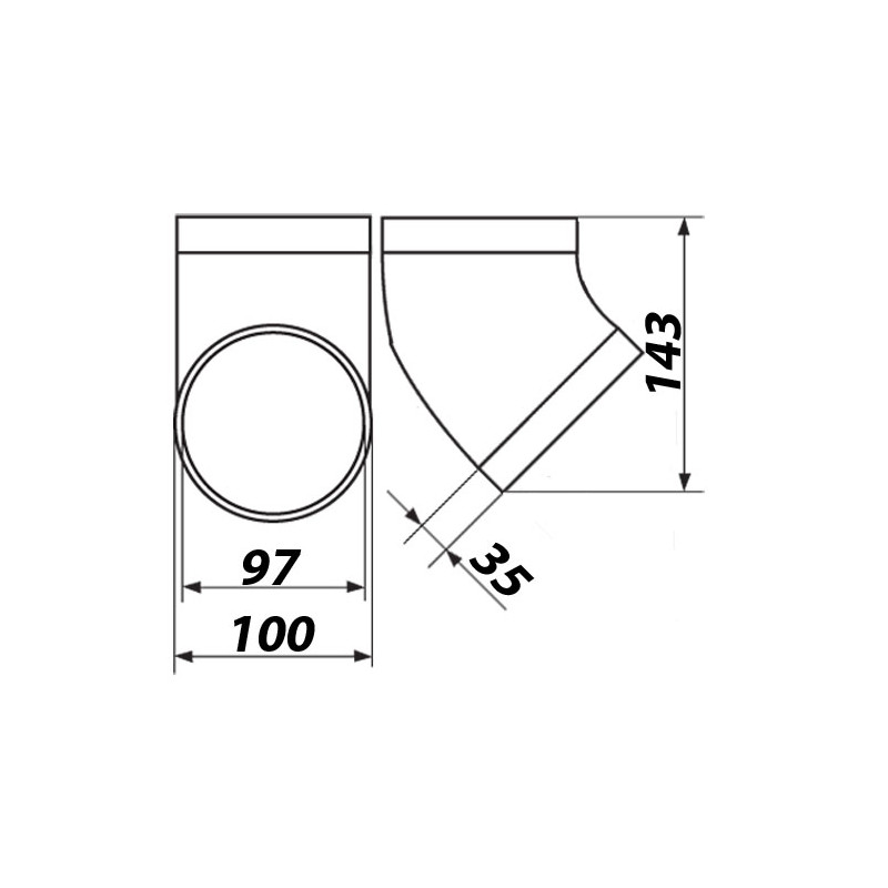 Cot 45° PVC pentru conectarea conductelor sau a componentelor de ventilație cu diametrul de 100 mm.