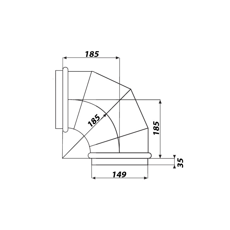 Cotul este pe deplin compatibil cu conductele spiro convenționale cu același diametru de 150 mm.