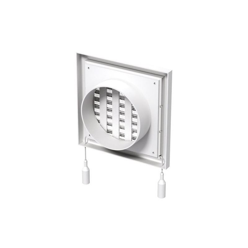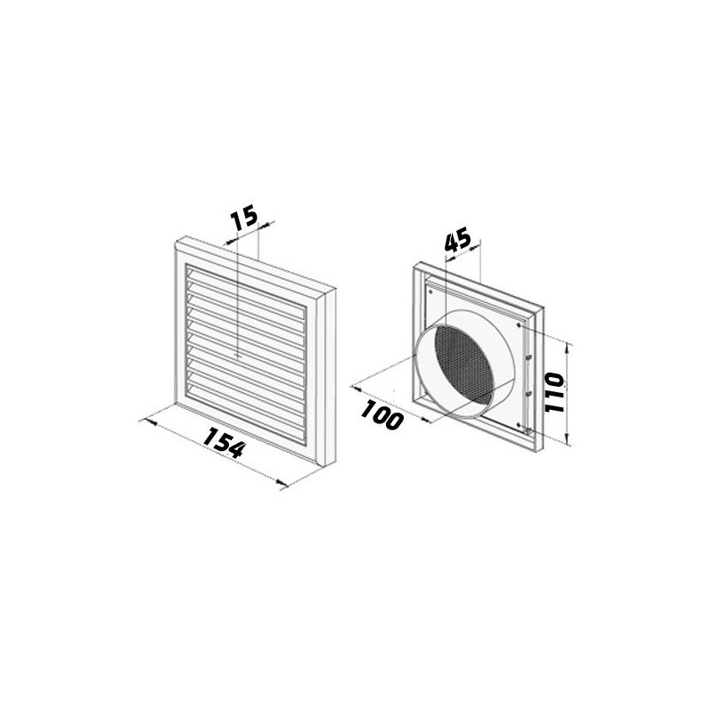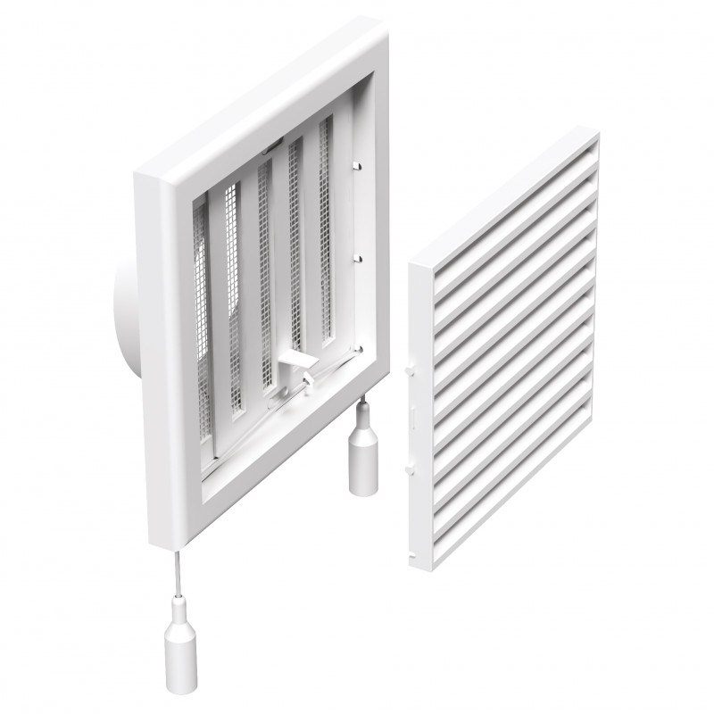Grila de ventilație plastică 154x154 mm cu flanșă Ø 100 mm este, potrivită atât pentru ventilație cât și pentru refulare. Are jaluzele orizontale fixe cu înclinare, iar în spatele lor este situat reglare mecanică pentru închiderea fluxului de aer.