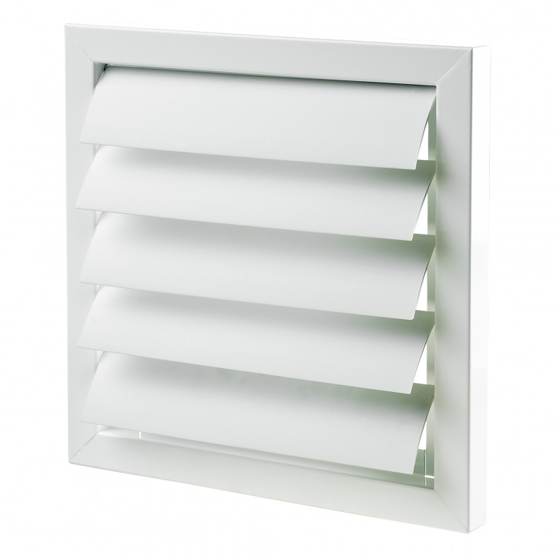 Grila de ventilație 350x350 mm fără flanșă este potrivită atât pentru ventilație cât și pentru evacuare. Grilă de ventilație cu jaluzele gravitaționale (plastic) și corp metalic este tratată cu strat de polimer în culoare albă pentru o mai bună rezistență la condițiile meteorologice externe. Este mai durabilă cu rigiditate mai mare (nu se răsucește). Acest lucru preveni căderea lamelelor din plastic, care în plus se extind peste partea din jos a grilei pentru, a preveni pătrunderea apei în conducte și, să nu provoacă pagube.