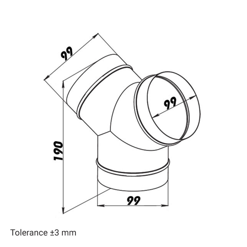 Ramificație metalică de diametru 100 mm în formă "Y" cu, cauciuc de etanșare special este utilizat pentru, realizare de bifurcații sau îmbinarea conductelor de ventilație. Durabilitatea sa este de lungă durată, realizat din tablă galvanizată și este prevăzut cu cauciuc de etanșare pentru o mai bună etanșare a conductelor de ventilație. Are aceleași diametre de 100 mm la toate cele trei capete. Datorită sistemului inovator SPIRO COMFORTCLICK, asamblarea este mult mai ușoară și mai rapidă doar cu un singur clic, nu sunt necesare unelte complicate (capetele sunt pur și simplu introduse una în alta). Rezistența la temperaturi este de max. 80 °C, în cazul expunerii pe termen scurt, ramificația poate fi expusă la temperatură de până la 100 °C.