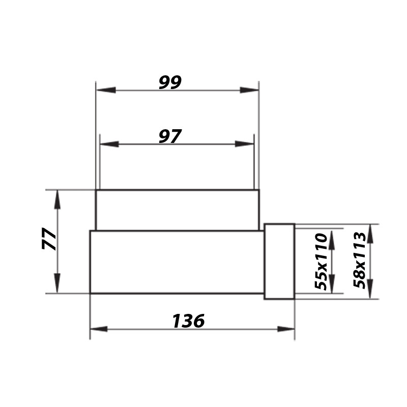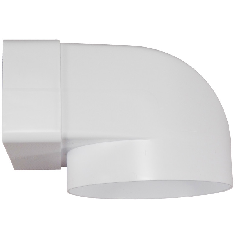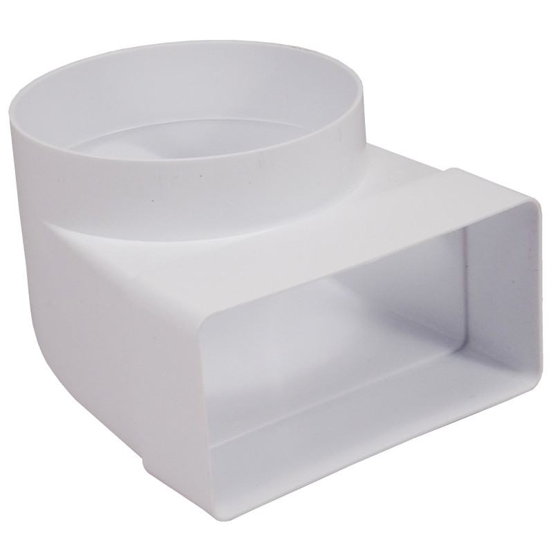 Reducție PVC 90° în formă de cot pentru conectarea conductelor circulare Ø 100 mm și conducte rectangulare 110x55 mm sau a componentelor. Această reducție este cel mai mult utilizată între hote și conducte.