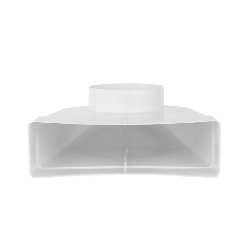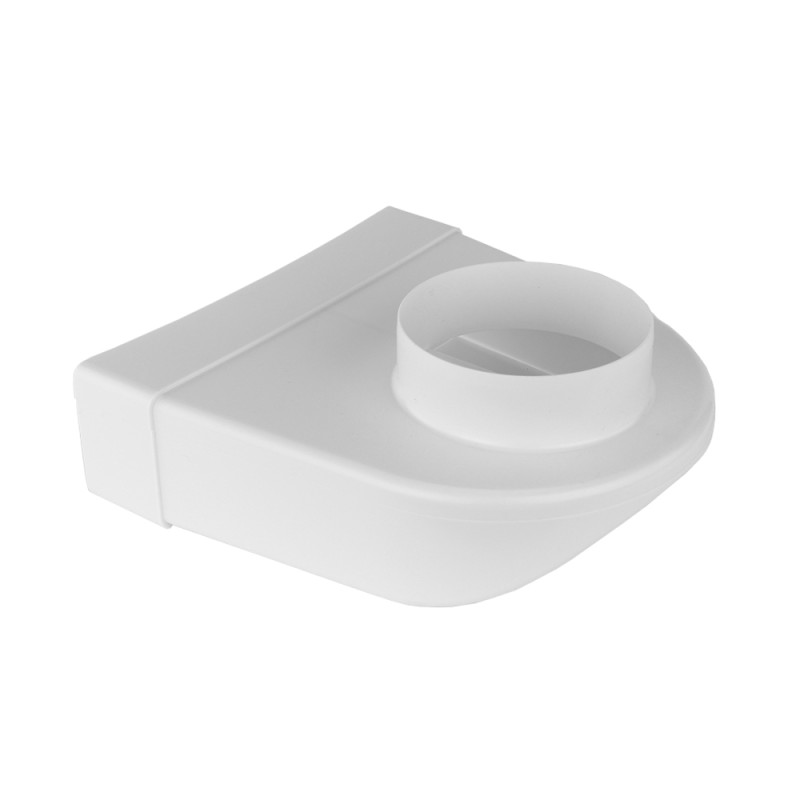 Reducție PVC 90° în formă de cot pentru conectarea conductelor circulare Ø 100 mm și conducte rectangulare 204x60 mm sau a componentelor. Această reducție este cel mai mult utilizată între hote și conducte.
