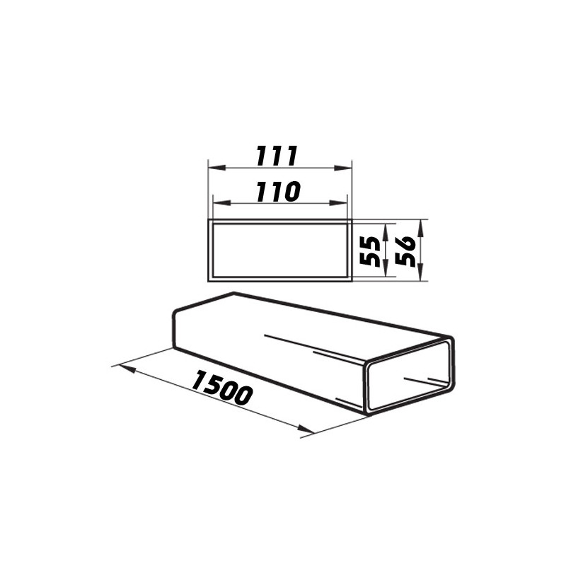 Tubulatură PVC flexibilă rectangulară cu dimensiune 110x55 mm și lungime 1,5 m este, utilizat în spații mici și mijlocii cum ar fi apartamente, bucătării, toalete, cămară, birouri etc. Se folosește pentru conectarea la sistemul de evacuarea aerului (hota de bucătărie...).