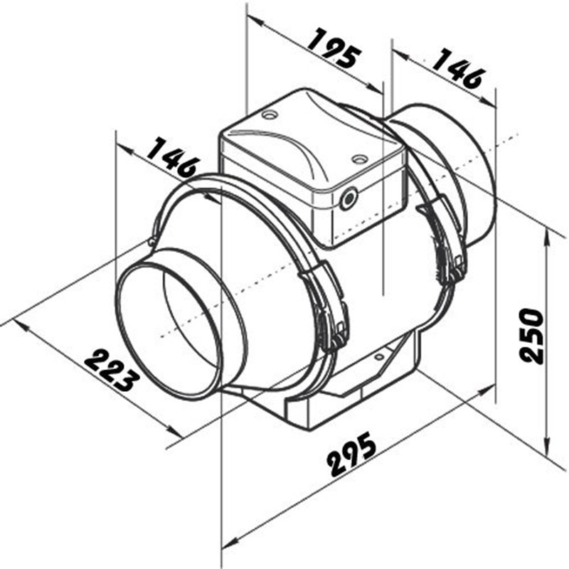 Motorul puternic cu rulmenți cu bile vă permite să instalați ventilatorul oriunde în sistemul de conducte - vertical și orizontal. În același timp, puteți monta mai multe ventilatoare in-line pentru a mări presiunea sau capacitatea aerului transportat.