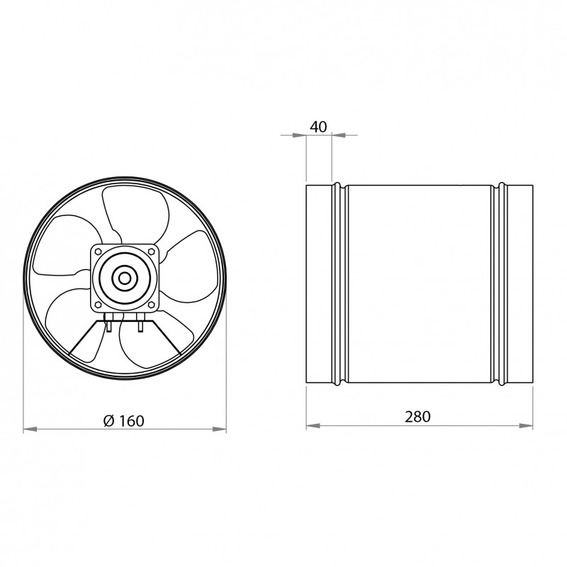 Ventilator de tubulatură din metal Dalap VPI 160 mm pentru transportul aerului în conducte de ventilație. Este prevăzut cu garnitură de cauciuc pentru, a reduce vibrațiile și etanșare mai bună la asamblare.
