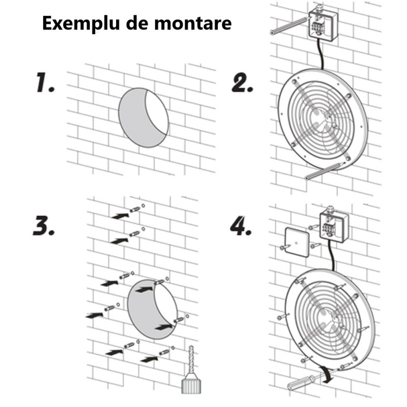 Ventilatorul montați simplu, direct pe perete și fixat cu șuruburi. Adâncimea de instalare este de 11 cm.