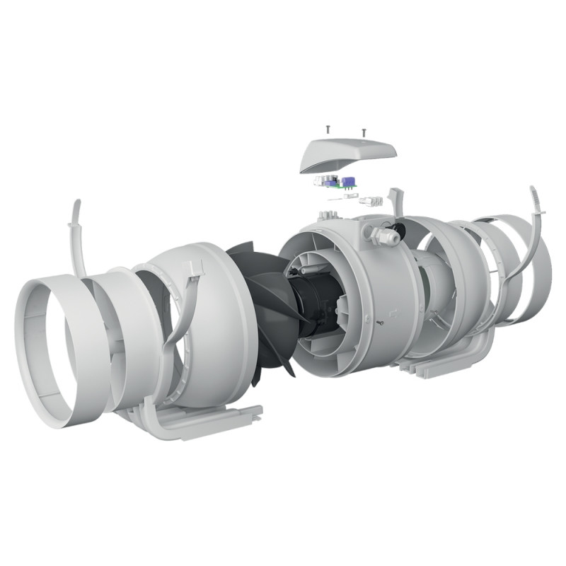 Motorul cu rulmenți cu bile nu numai că asigură o durată de viață mai lungă (până la 40.000 de ore), dar asigură și instalarea atât în poziție orizontală cât și verticală. În același timp, în cazul in care se doreste creșterea presiunii sau a capacității aerului transportat, mai multe ventilatoare in conductă pot fi instalate unul după altul.